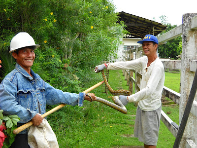 Buhat was able to catch the snake, and I knew from the beautiful patterns, it was a boa constrictor. Buhat said the bigger male was caught a few weeks ago, and this smaller 7 footer must be the female.